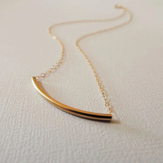 Single Curve Bar Rose Gold Layered Chain Necklace