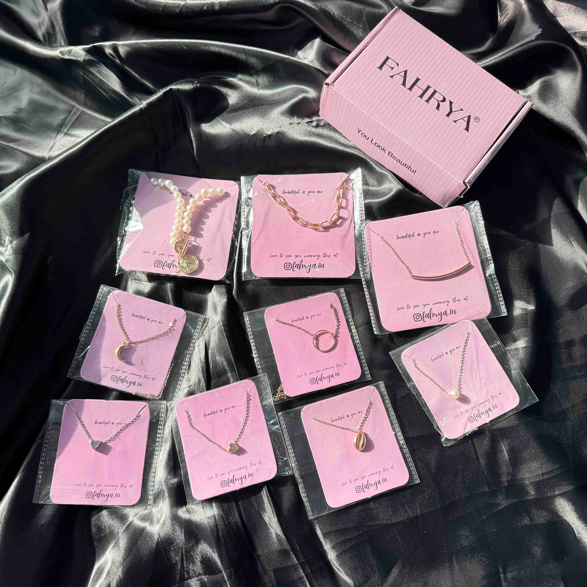 It was amazing packing I'm loving all the 9 Necklace combo plus bracelet I have ordered with free earing. All the items in box are damn Cute😍😍 Please make this type of product combo more and more..! Good luck🥰✨️