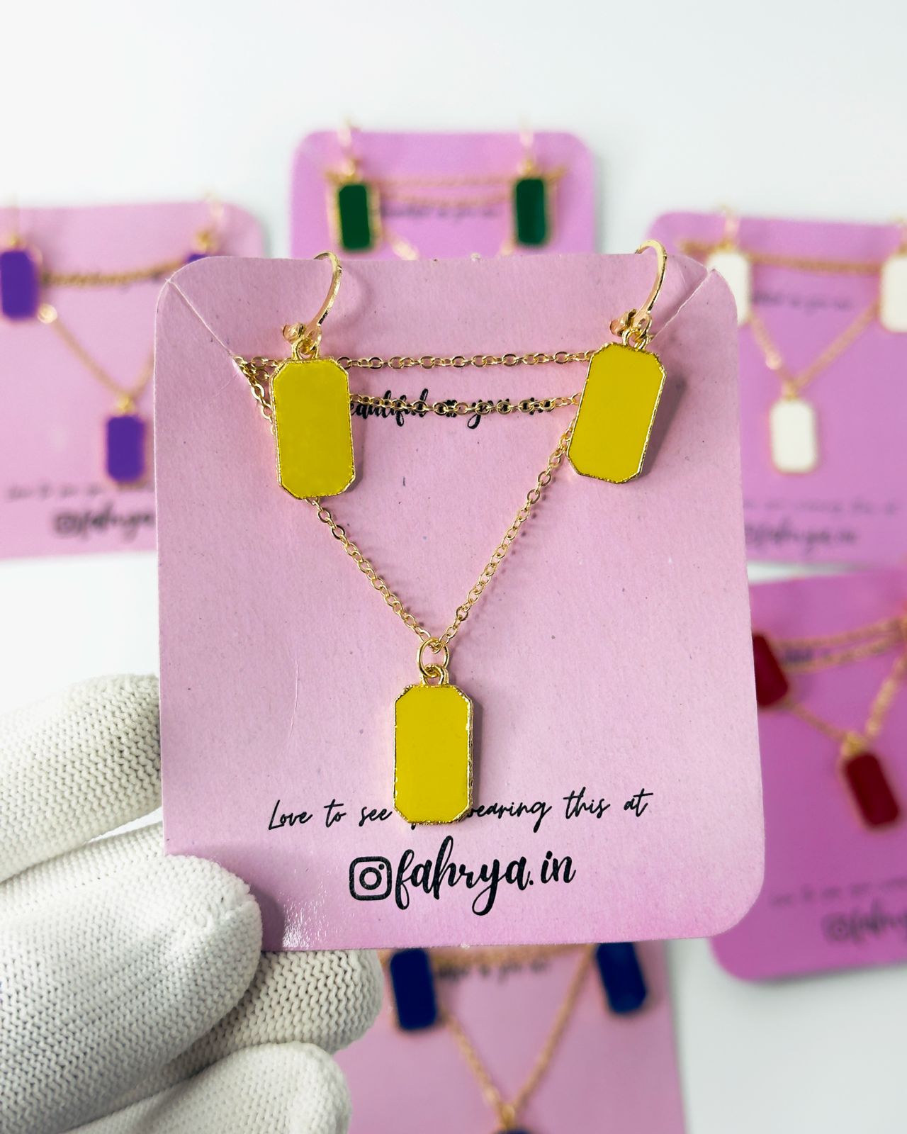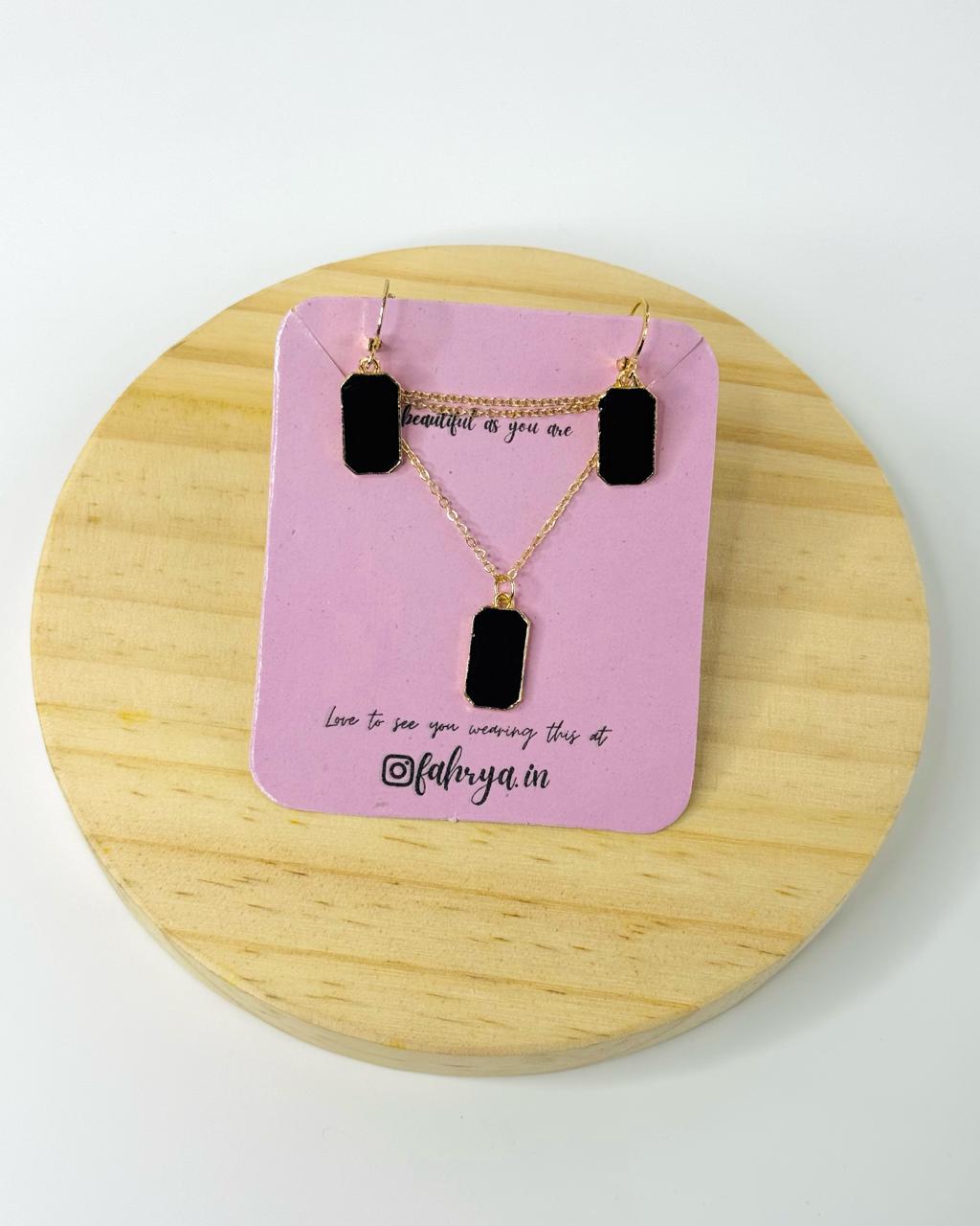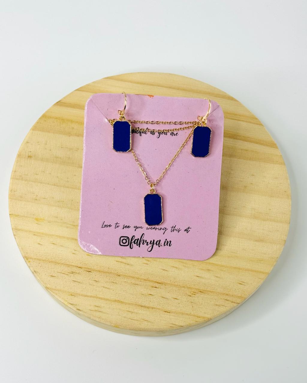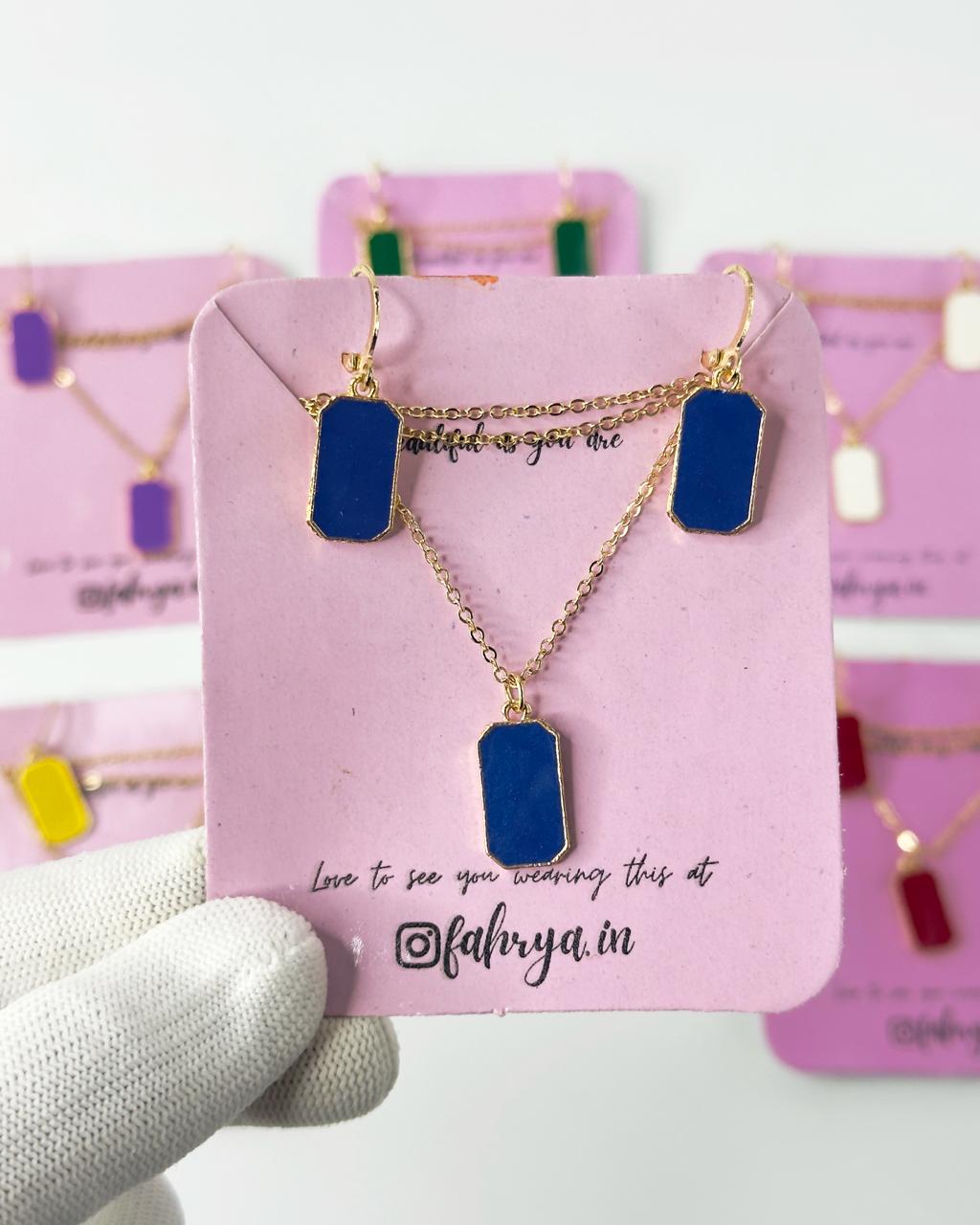 Minimal beautiful rectangle pendant matching necklace and earrings set in 7 different colors.