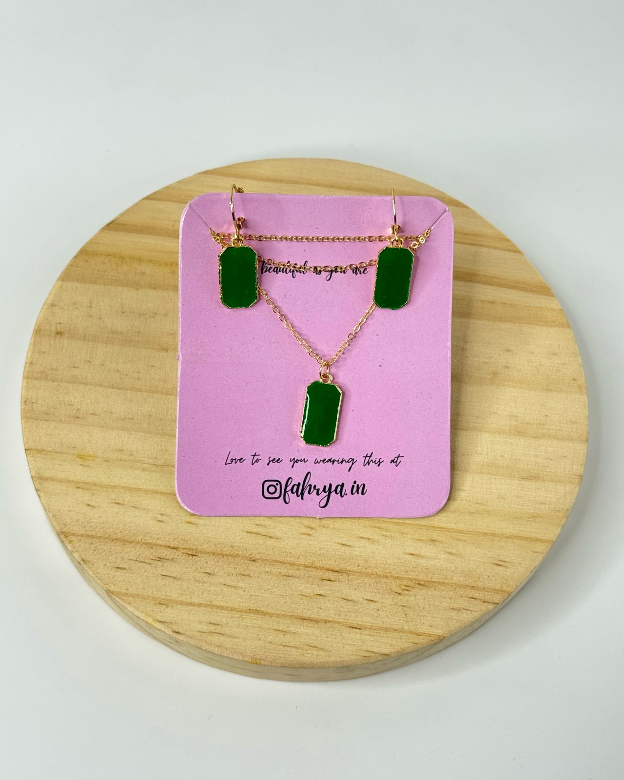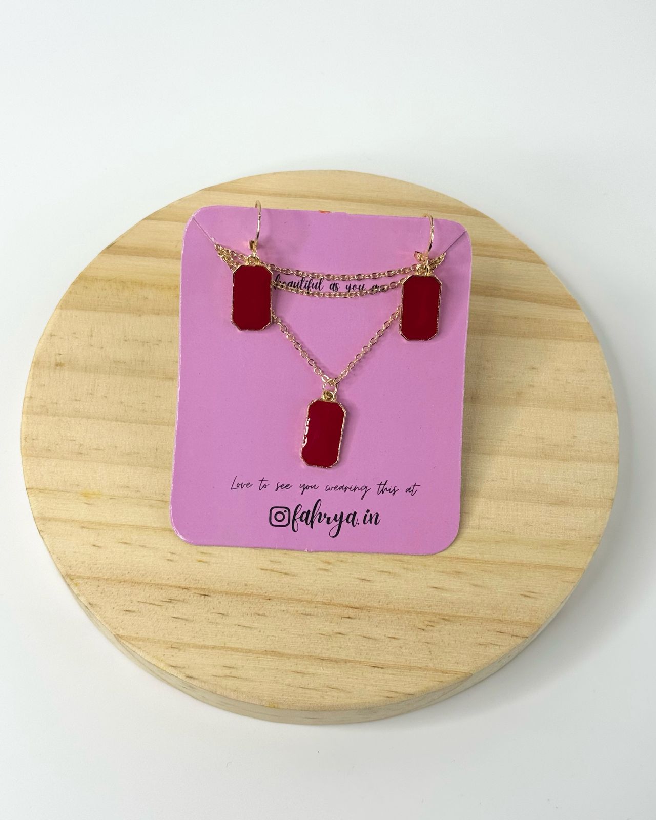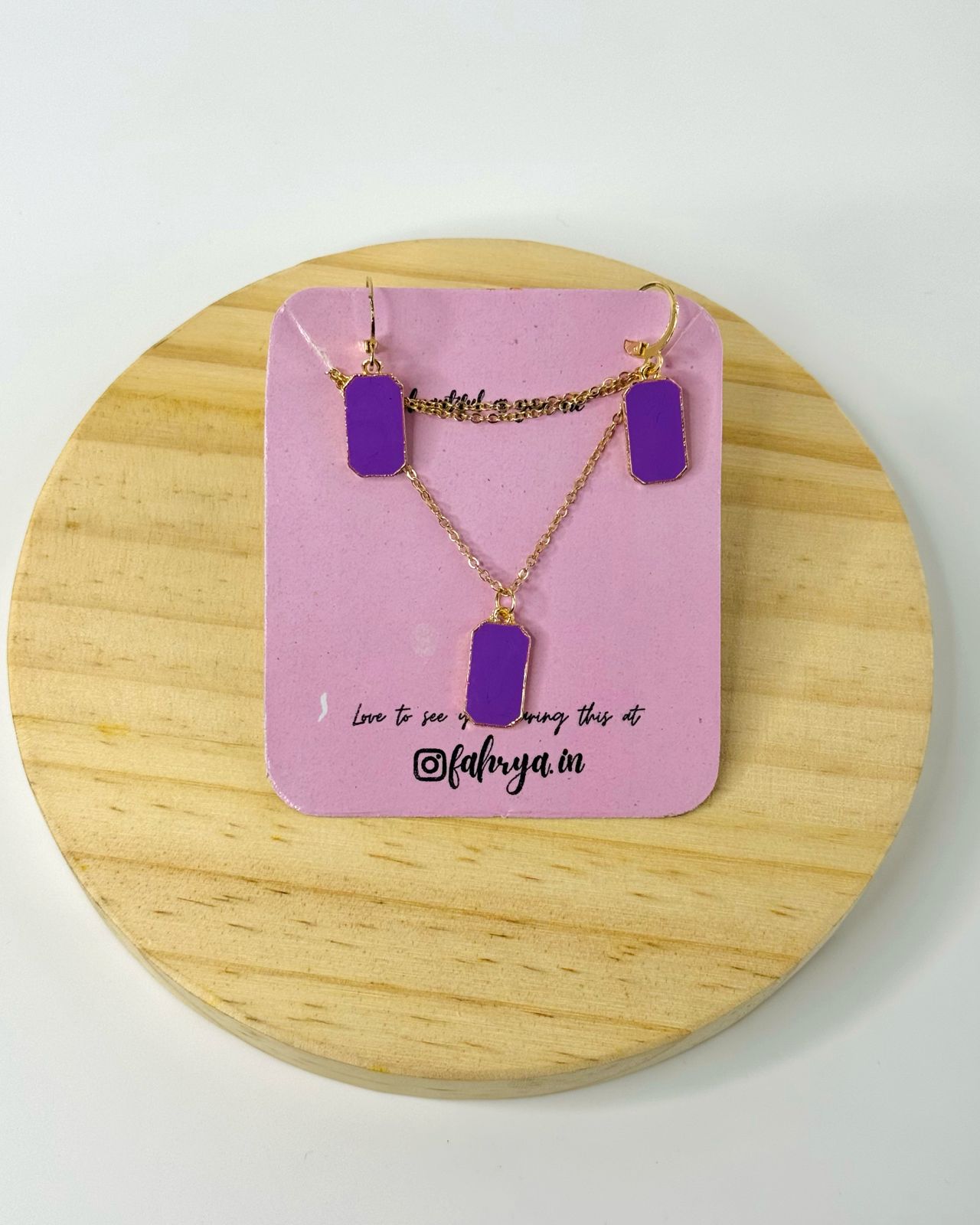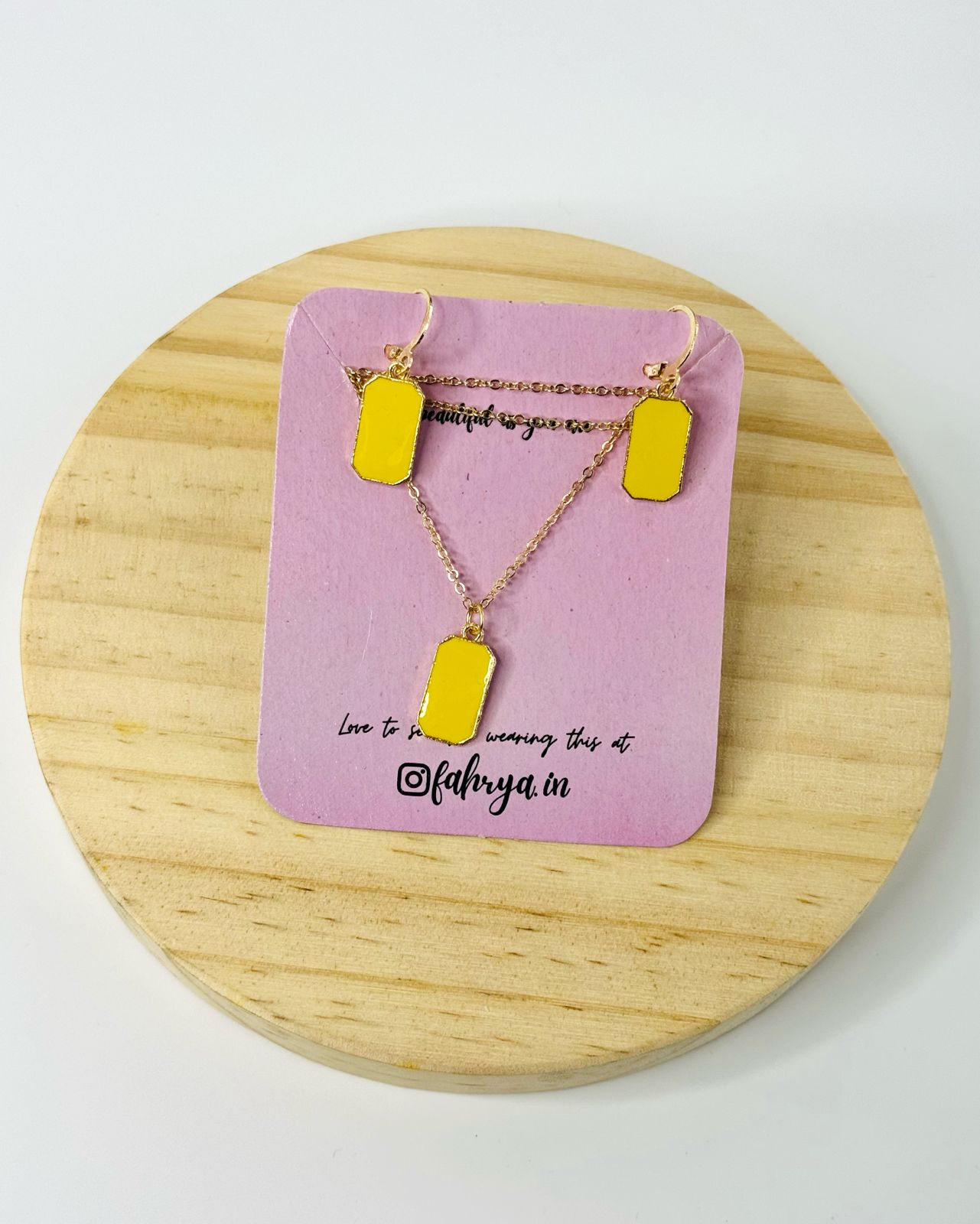 Minimal beautiful rectangle pendant matching necklace and earrings set in 7 different colors.