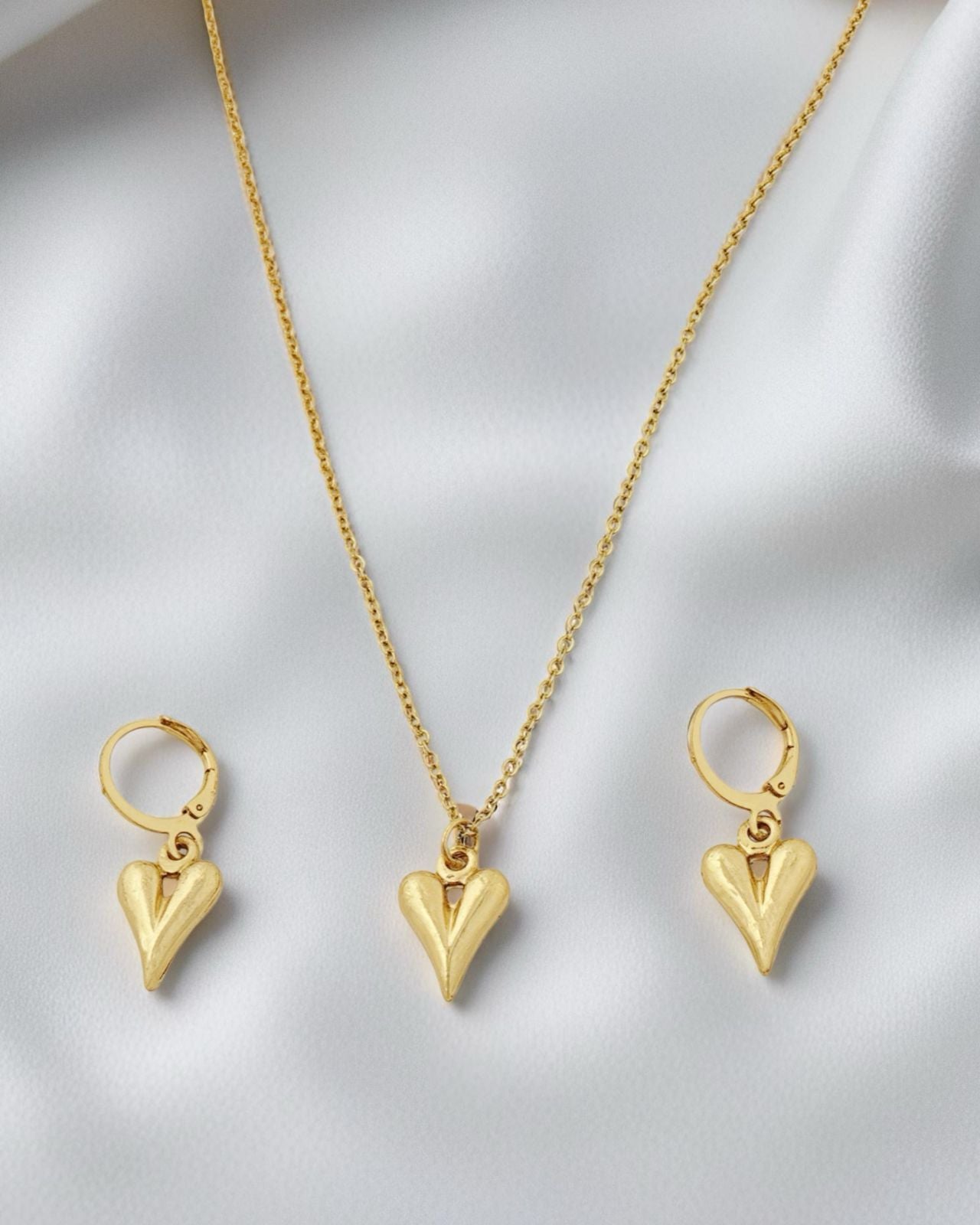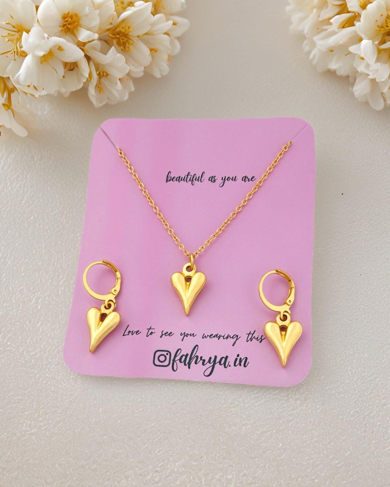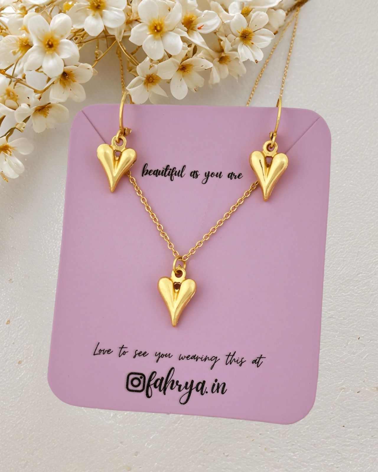 Bubble heart matching rose gold plated chain necklace and earrings set.