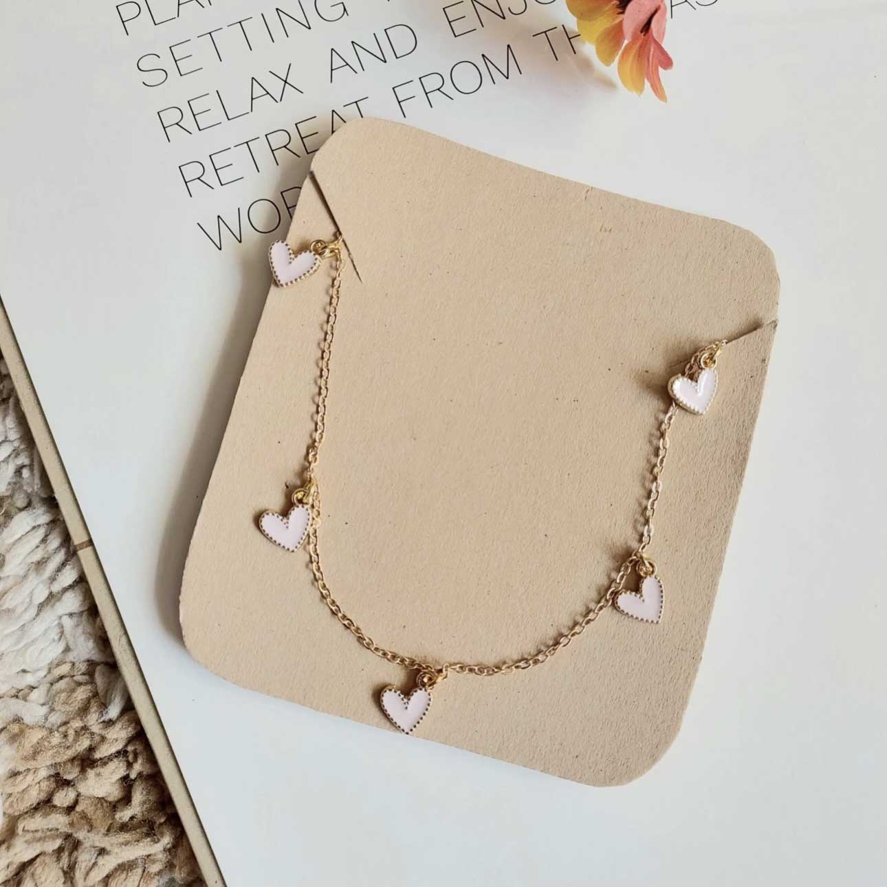 This stylish five mini white heart necklace adds the perfect touch of elegance to your outfit. With its fancy design, it's the perfect accessory for any occasion. Add a touch of sophistication to your look with this stunning necklace.