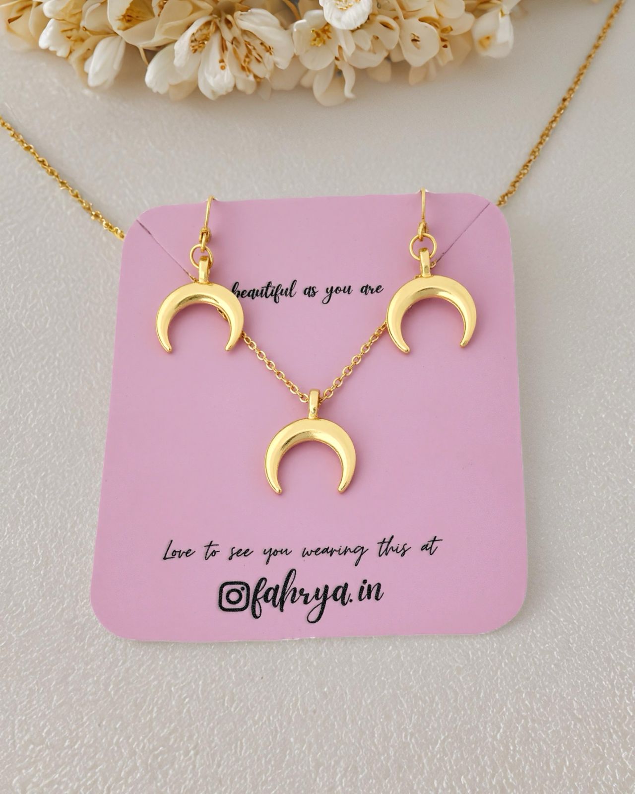 Beautiful matching moon charm pendant, rose gold plated chain neckalce and earrings set.