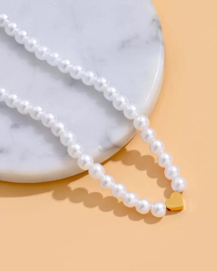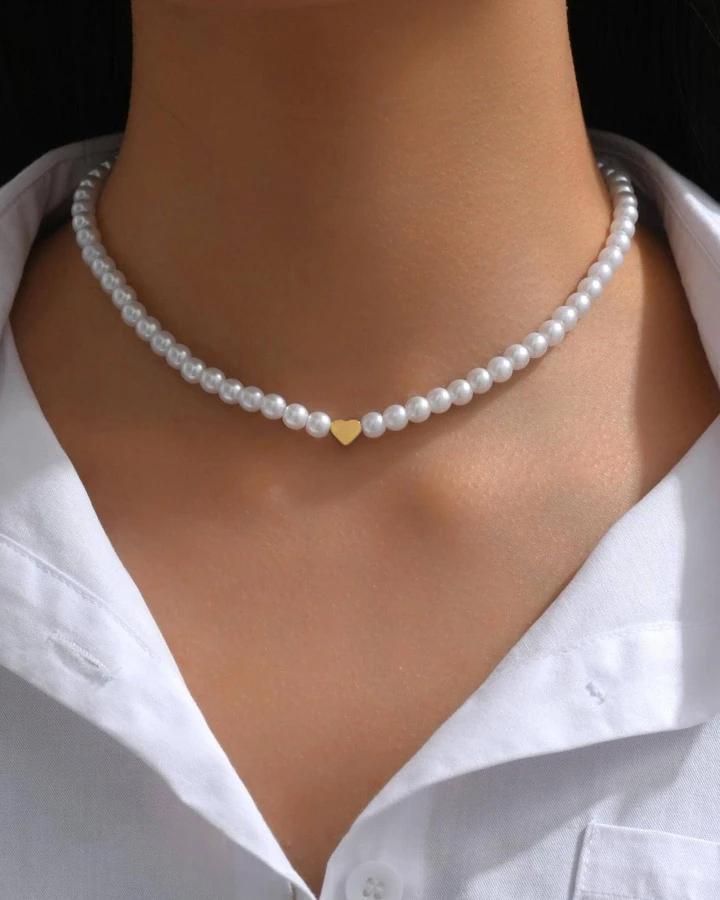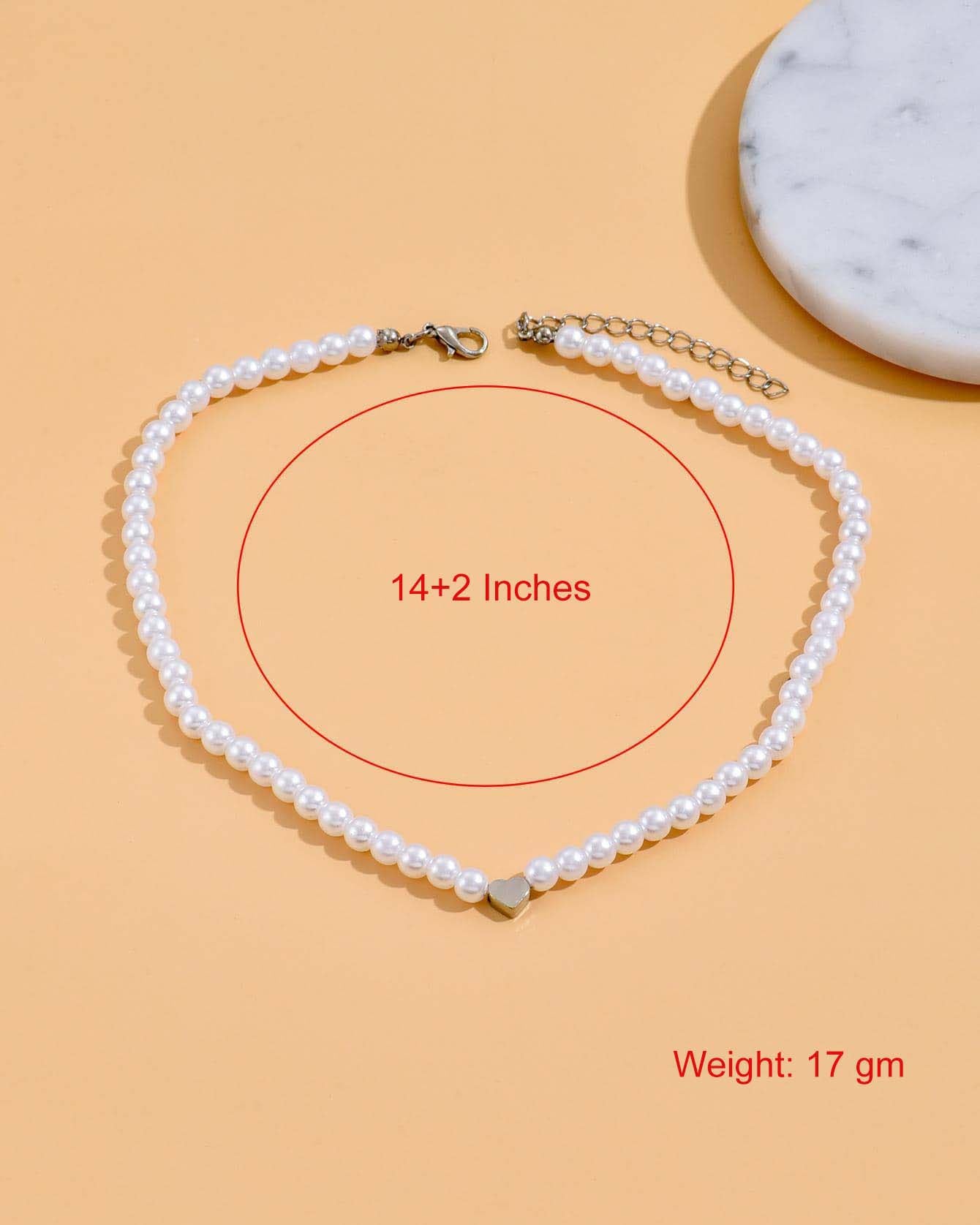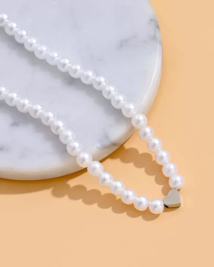 Elegantly crafted pearl round necklace featuring a delicate silver heart charm. This sophisticated accessory combines the timeless appeal of lustrous pearls with the symbolic sentiment of a heart pendant. Perfect for both everyday wear and special occasions, this necklace adds a refined touch of romance to any ensemble.